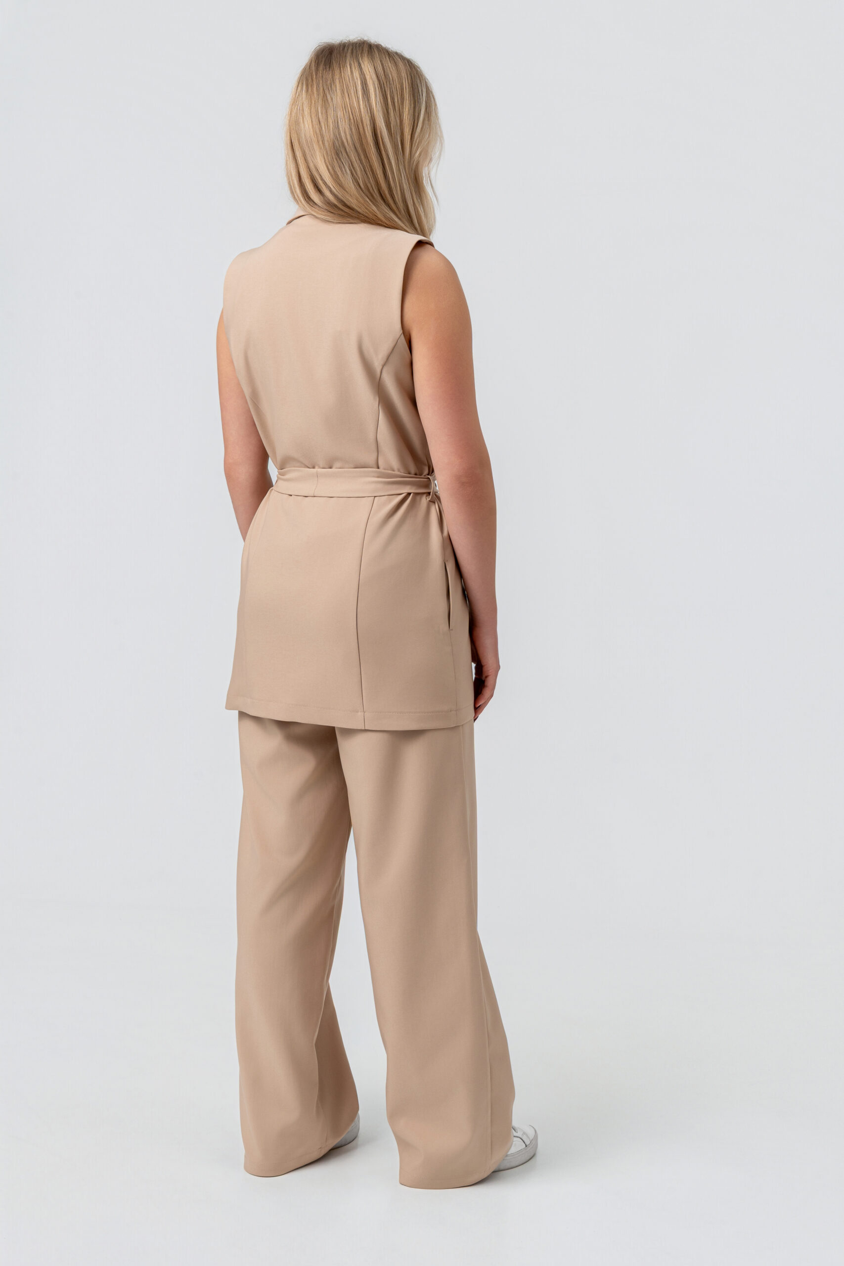 Model Dubaj charakteryzuje się wysokim stanem, który pięknie podkreśla talię i zapewnia stabilne dopasowanie podczas ruchu. Szerokie nogawki nadają spodniom nowoczesnego, lekko eleganckiego charakteru, a jednocześnie zwiększają wygodę noszenia – doskonale układają się na sylwetce i zapewniają pełną swobodę pracy.